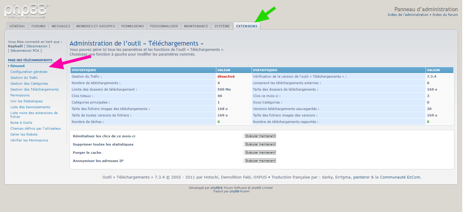 • phpBB - extension - Hotschi's Downloads - Paramètres du PCU :