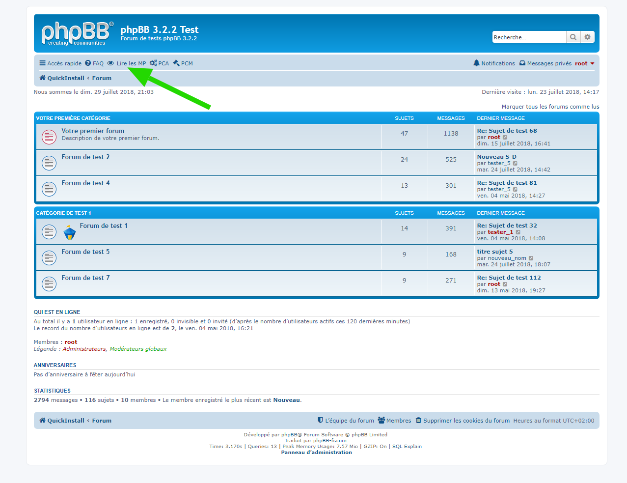 - Pour modifier l’utilisateur ayant droit de consulter la liste de MP merci de consulter le viewtopic.php?p=4688#p4688 ;