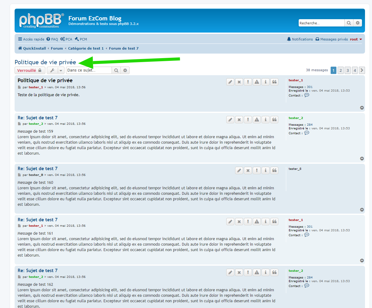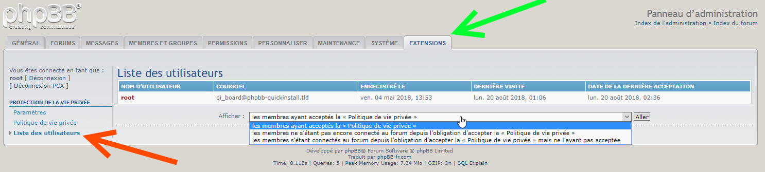 - saisir son texte personnalisé pour la « Politique de vie privée », remplaçant ainsi celui par défaut dans phpBB ;