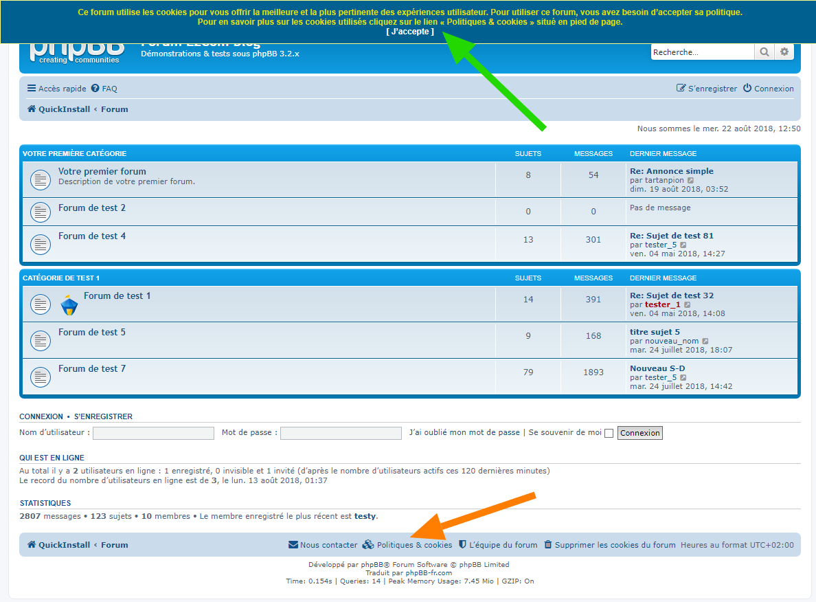 • obliger l’acceptation des cookies du forum avant qu’un membre ne puisse s’enregistrer et se connecter sur le forum,