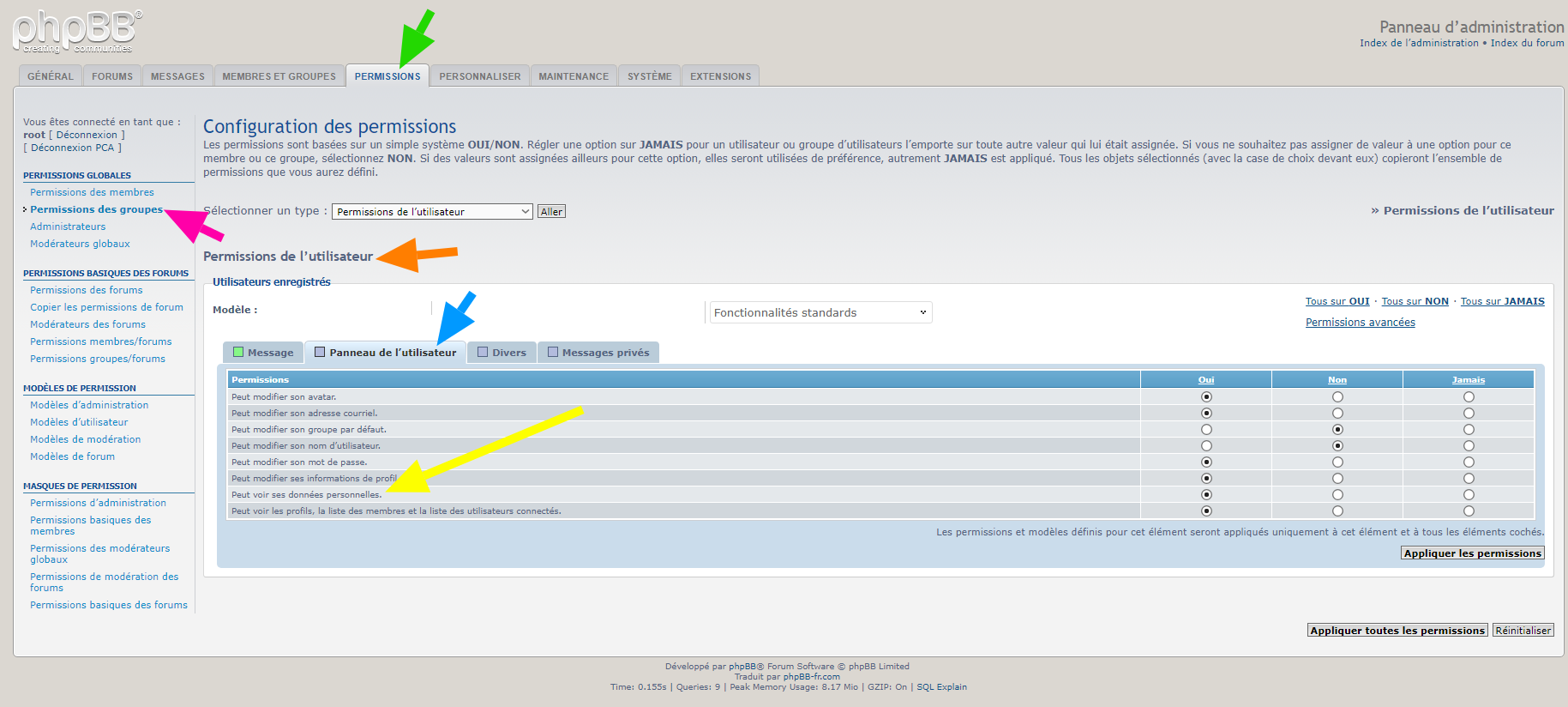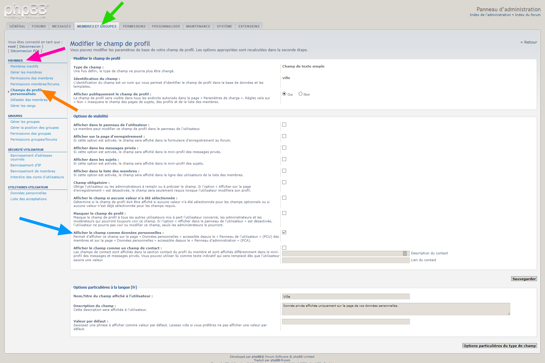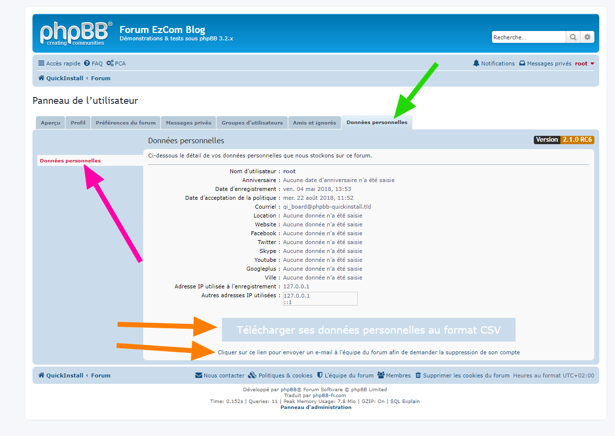 • afficher un lien de type « mailto », pour contacter l’équipe du forum, sur la page « Données personnelles » accessible depuis le « Panneau de l’utilisateur »,