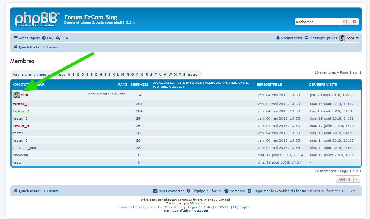 - Nom officiel et nom francisé : Avatars on Memberlist - Avatars affichés sur la page de la liste des membres