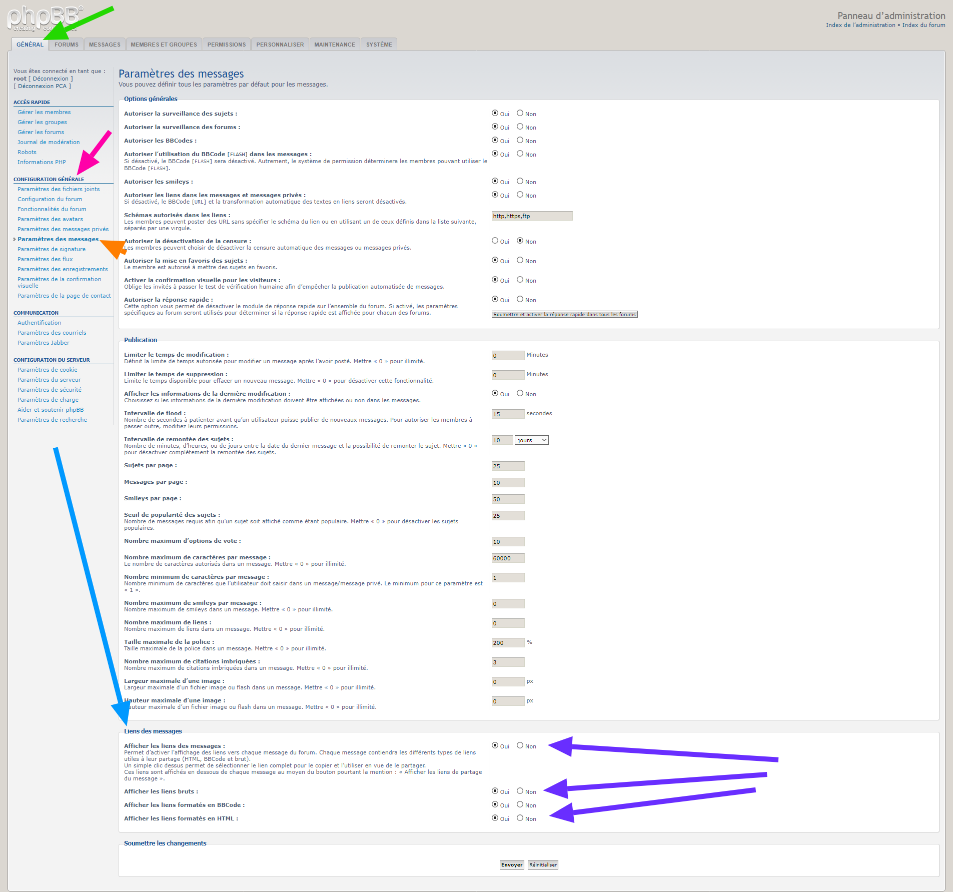 5. catégorie d’options « Liens des messages » .