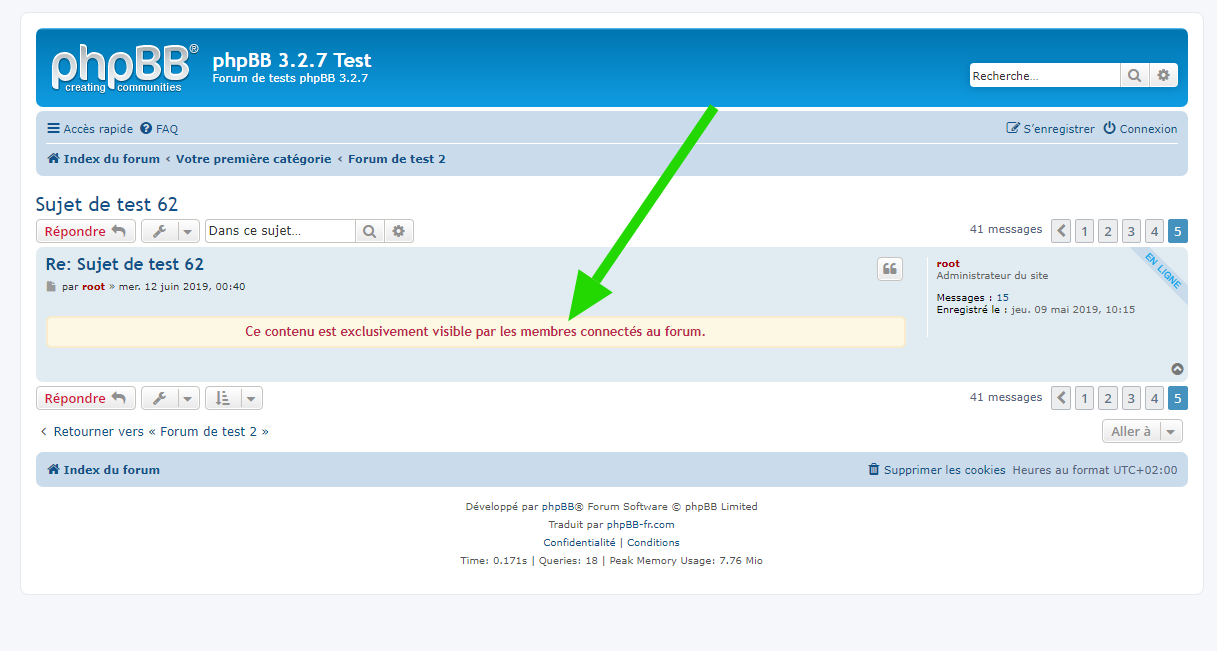 - Vue d’un message dont le contenu est exclusivement visible par les membres connectés au forum :