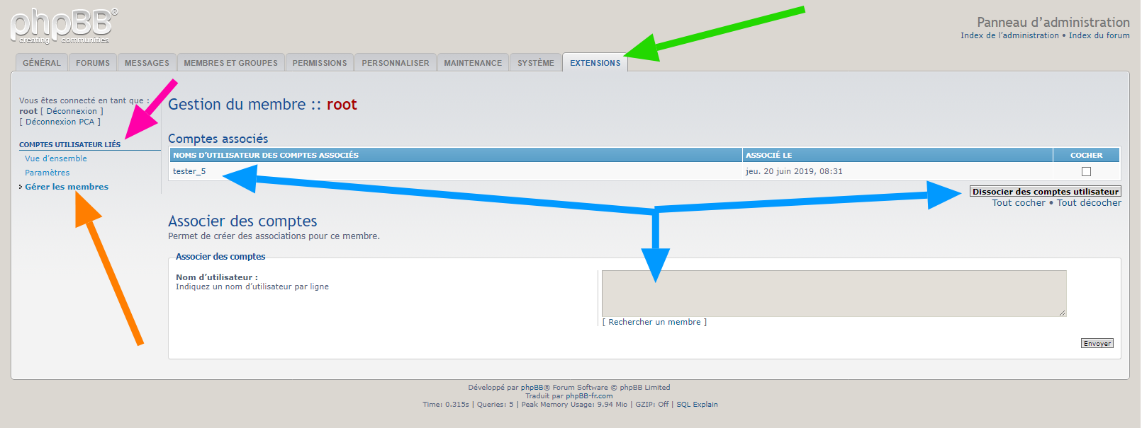 phpBB - Extension - Linked Accounts - Paramètres - Gérer les membres 01.png