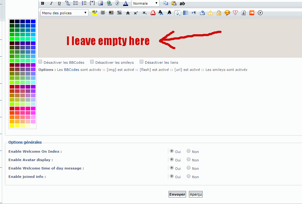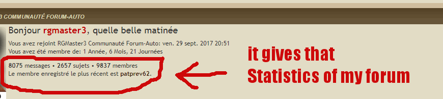 impossible d'ajouter les statiques du forum dans "Welcome on index" avec le texte personnalisé