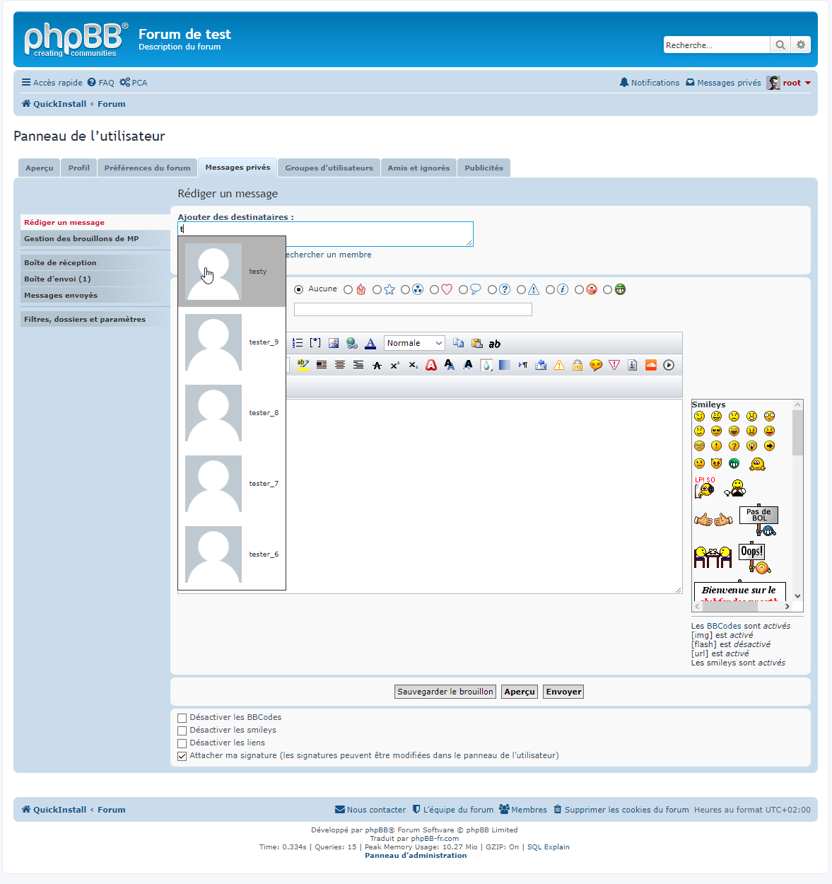 ► Description : Cette extension pour phpBB 3.1.x & 3.2.x permet d’afficher des suggestions de noms de membres du forum lors de la rédaction d’un nouveau message privé.