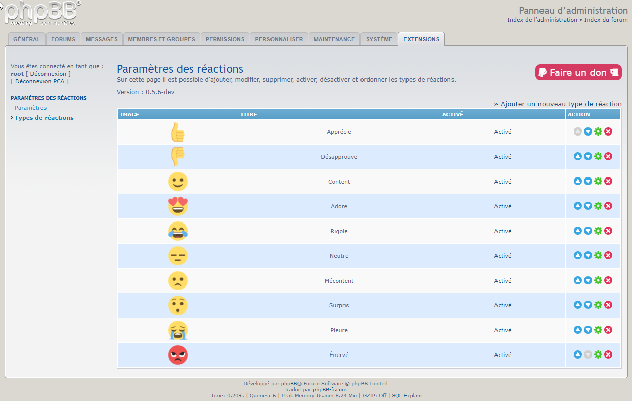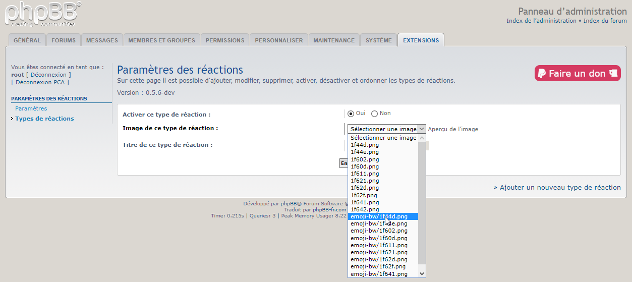 - Description : Cette extension pour phpBB 3.2.x permet de réagir aux messages en attribuant un emoji de son humeur. Il est possible de :