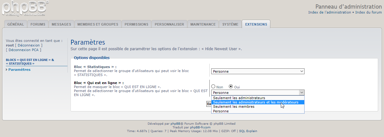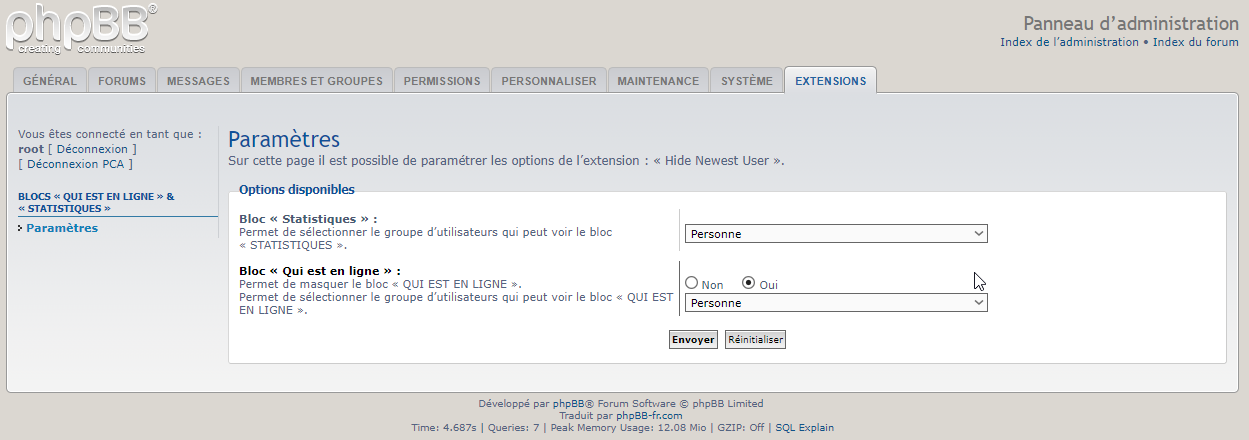 EXTENSION : Hide Newest User - Masquer les blocs « Qui est en ligne » & « Statistiques » Traduction EzCom