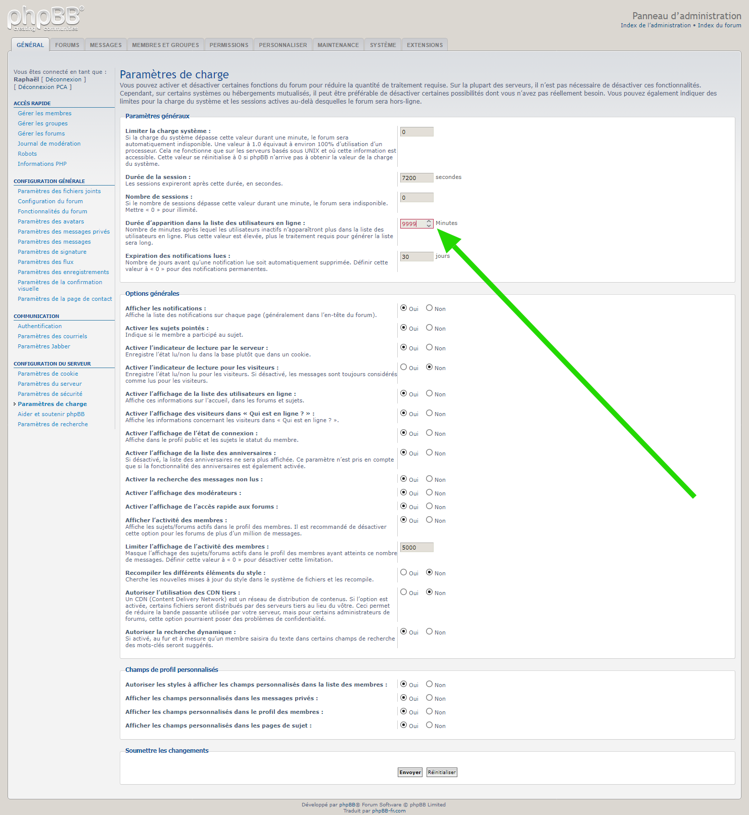 Limite augmentée à 9999 pour l’option - Durée d’apparition dans la liste des utilisateurs en ligne.png