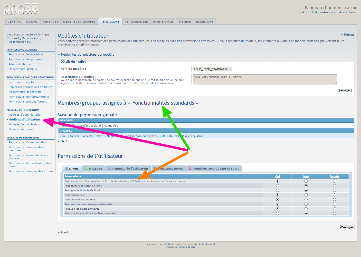 ► Description : Cette extension pour phpBB 3.1.x & 3.2.x permet de masquer les statistiques d’activités des dernières 24 heures. Une nouvelle permission est ajoutée afin d’autoriser les groupes/utilisateurs à voir ou non les statistiques d’activités des dernières 24 heures. Cette extension est un complément de l’extension présentée sur le viewtopic.php?f=11&t=695, il est donc obligatoire d’installer cette dernière au préalable. Enfin, cette extension permet d’augmenter la limite de l’option « Durée d’apparition dans la liste des utilisateurs en ligne » jusqu’à 9999 minutes.