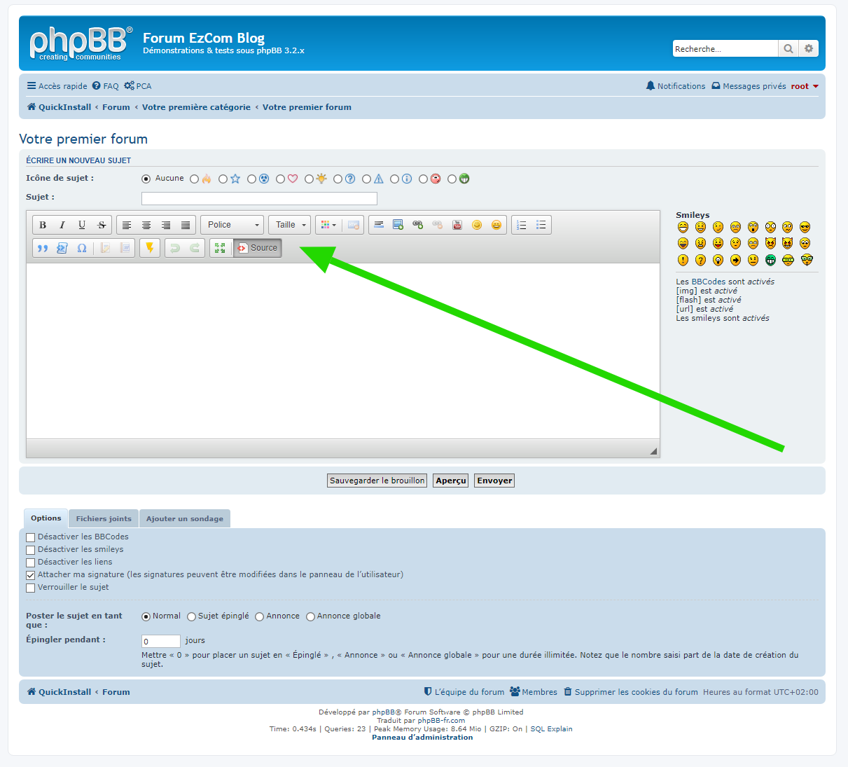 - activer la prise en charge des extensions ajoutant de nouveaux boutons de BBCodes,