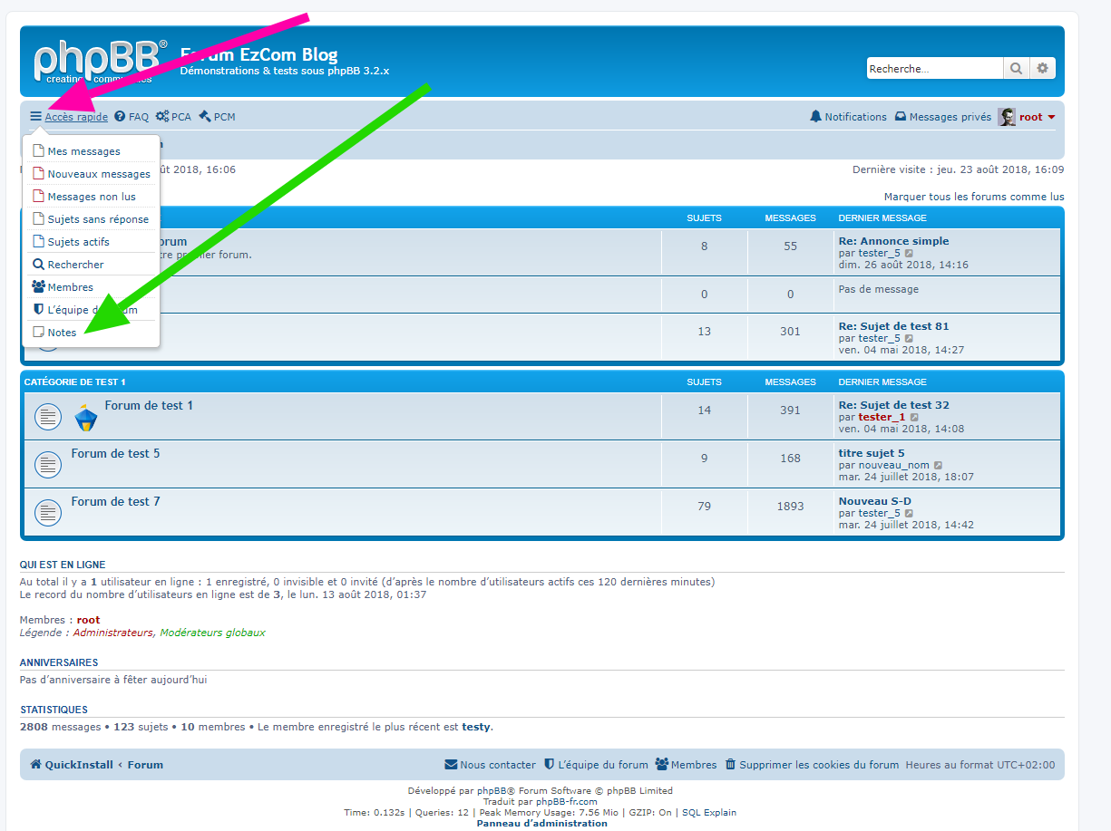 - Description : Cette extension pour phpBB 3.1.x & 3.2.x permet aux membres de son forum d’avoir une page dédiée à la rédaction de ses notes pour les utiliser, par exemple, par la suite sur le forum. Les notes sont privées et ne peuvent être lues par l’équipe du forum (modérateurs & administrateurs).