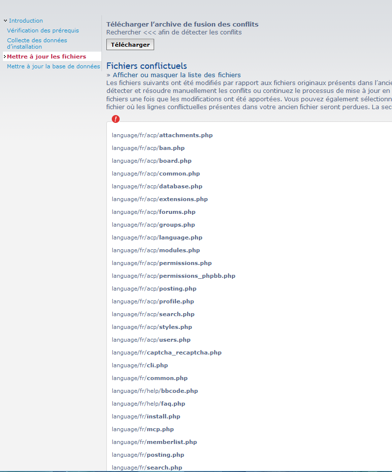voilà je suis en 3.2.2 j'ai fais une mises à jours à 3.2.3 mais j'ai un probléme question de langage ? que je me comprend pas voici l'erreur que je reçois