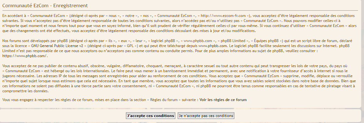 Comment personnaliser les conditions générales du forum lors de l’enregistrement ? | How to customize terms of conditions ofr phpBB boards?