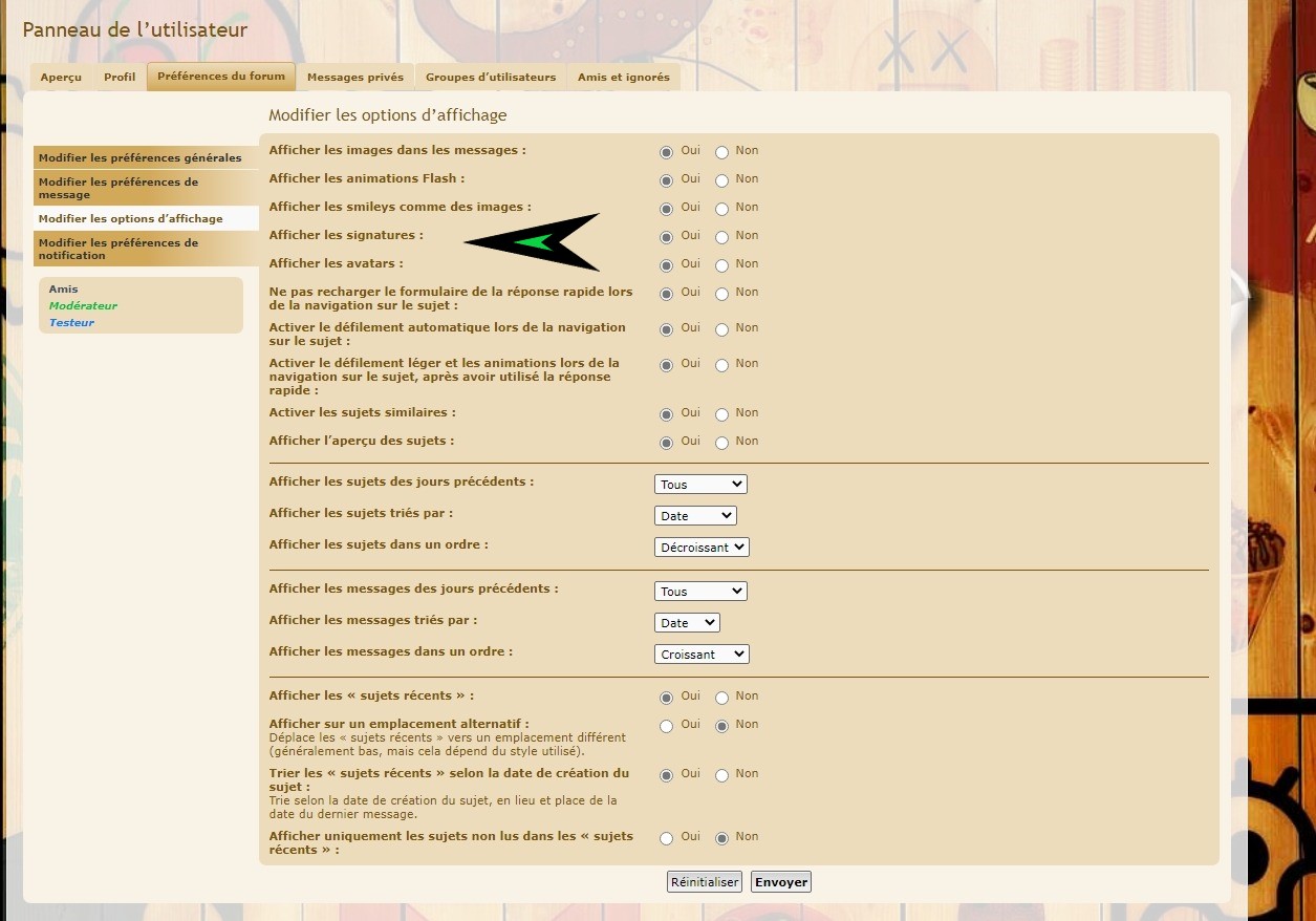 J'ai bien donner tous les permissions pour utiliser ma signatures sur les forums et sous forum ainsi que la sélection de ce derniers sur mon profil et même sur mon panneau d'utilisateur