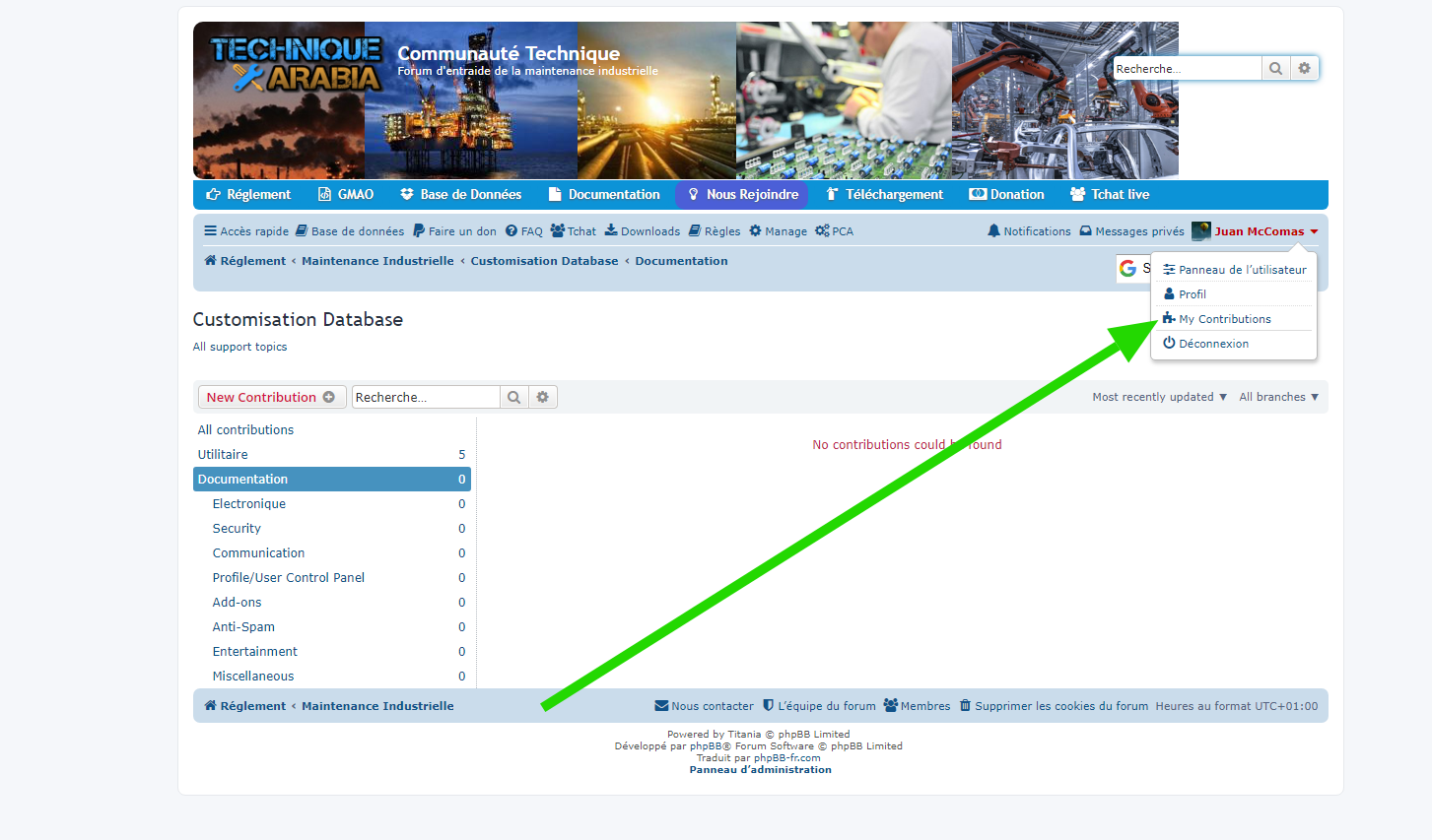 Aussi, tu as raison on peut librement créer/modifier/supprimer les contenants (catégories) mais pas les thématiques associées aux contributions (types de contributions). La solution la plus simple est de modifier leur nom car tu ne pourras ni en ajouter ni en supprimer pour l’instant, pour cela dans ces fichiers : https://github.com/phpbb/customisation- ... e/en/types il faut modifier en général les deux lignes 46 & 47 portant le nom de ces types de contributions (au singulier et au pluriel). C’est une solution de contournement pour personnaliser leurs noms, pour en ajouter d’autres il faudrait faire un tutoriel plus avancé.