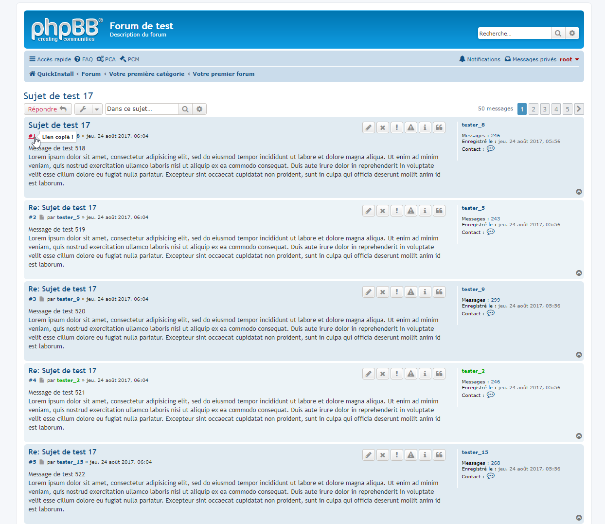 - Vue d’un sujet, lien du message copié lors du clic sur son numéro :