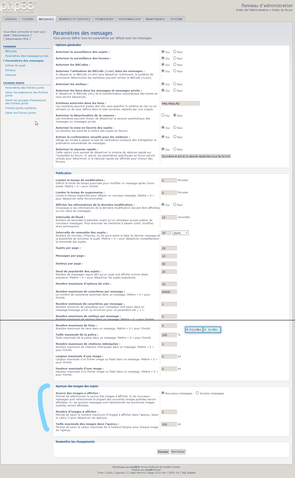 - page « Paramètres des messages ».