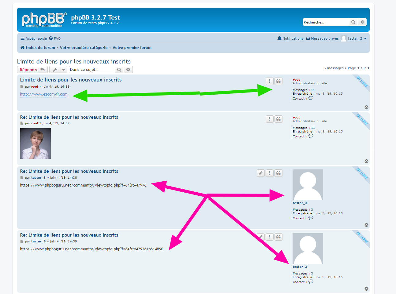 - Nom officiel et nom francisé : Disallow links before x posts - Désactiver les liens durant les x premiers messages