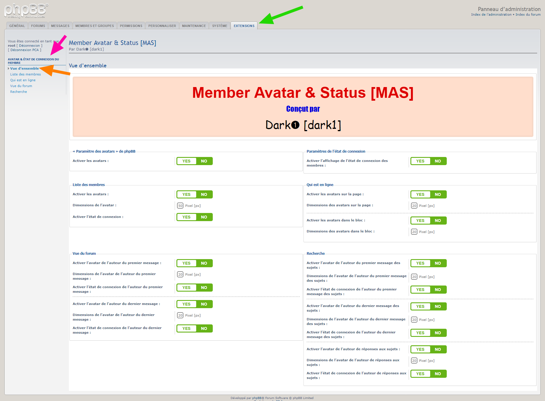 phpBB - Extension - Member Avatar & Status - Paramètres - Vue d'ensemble.png