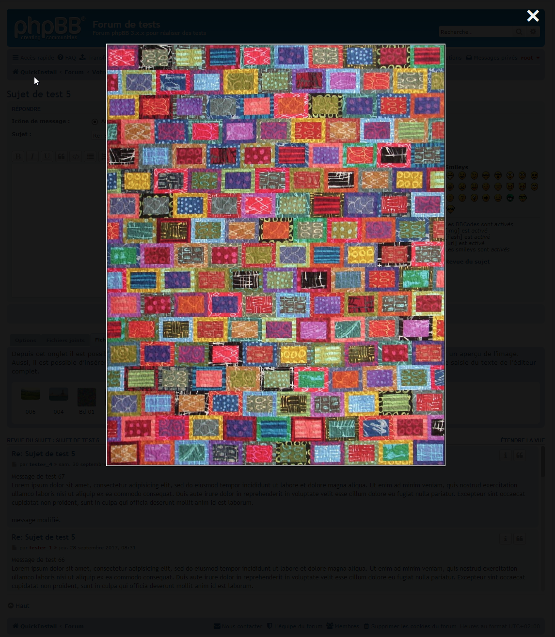 - Page de l’index du forum, un clic sur une miniature d’une image permet d’afficher son aperçu :