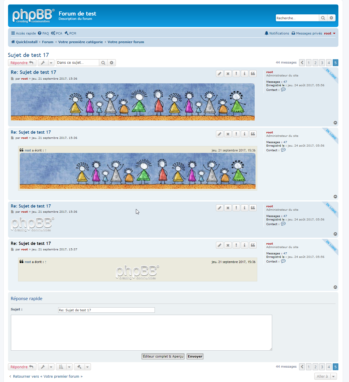 - Page de la vue d’un sujet, messages originaux et messages en citations :