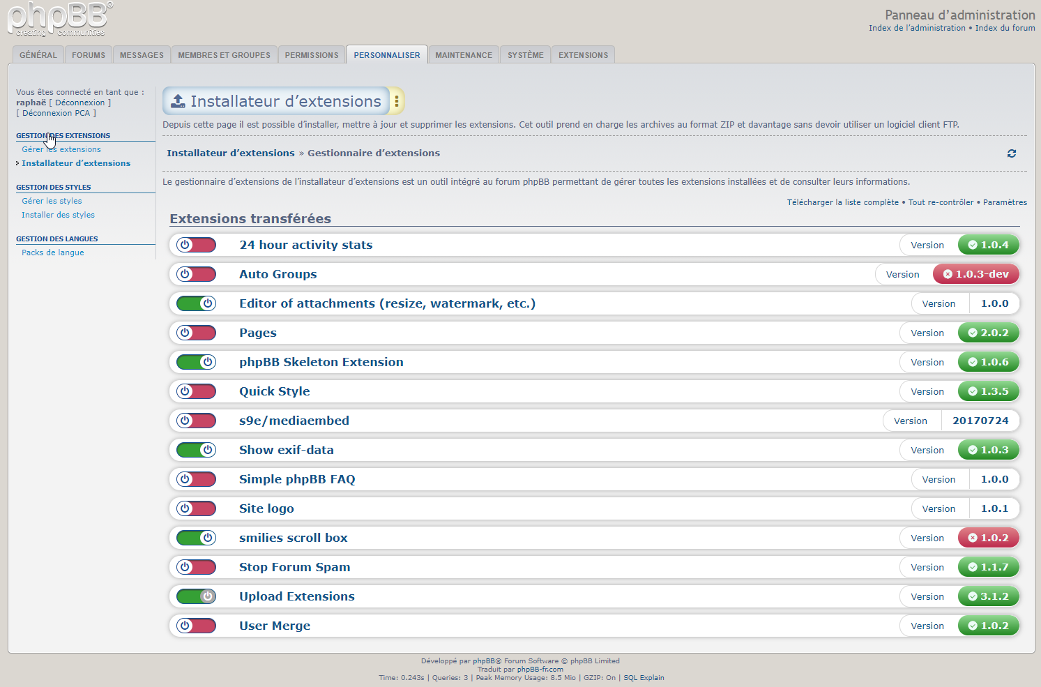 - Installation des extensions validées de phpBB.com :