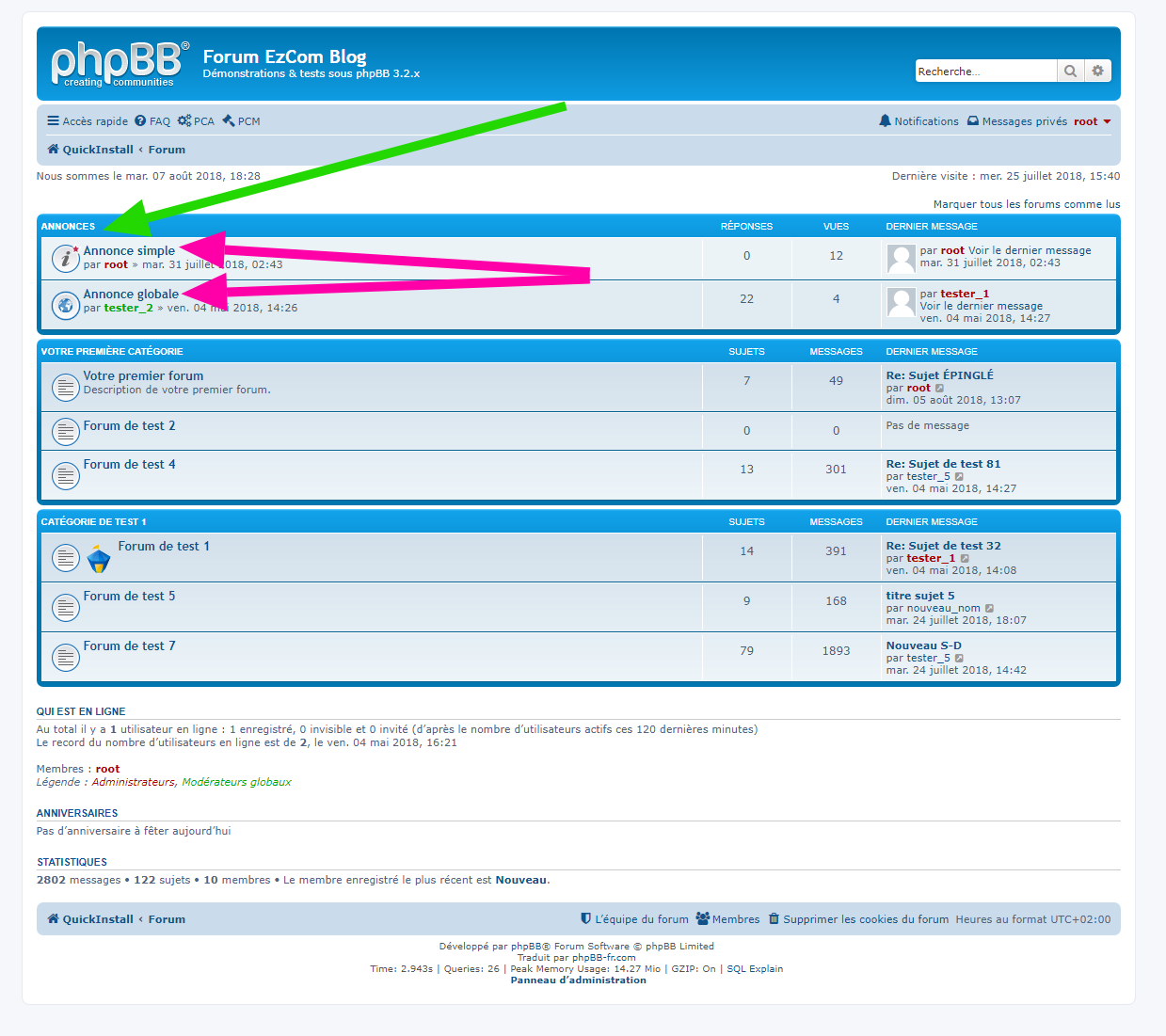 - Description : Cette extension pour phpBB 3.1.x & 3.2.x permet d’afficher les annonces simples et globales sur la page de l’index du forum. Il est possible de :
